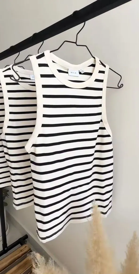 مدل تاپ زنانه راهراه با طراحی مینیمال و جذاب، مناسب استفاده روزمره و استایلهای کژوال.